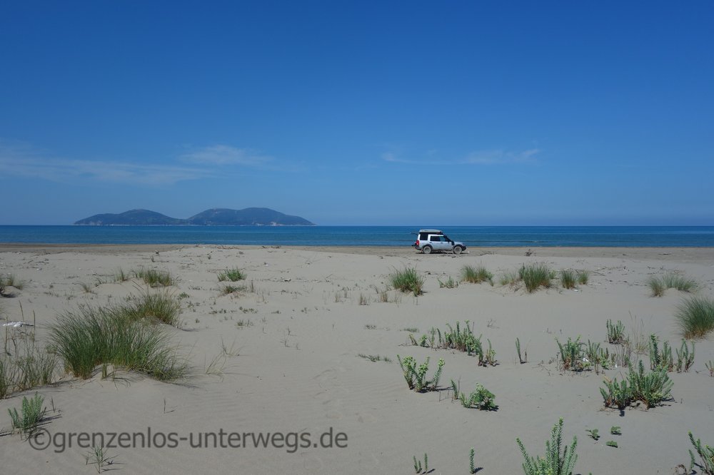 Der herrliche menschenleere Strand lädt uns zum Rumtrödeln und ausgiebigem Baden ein, bevor wir uns gegen Mittag auf den Weg machen.
